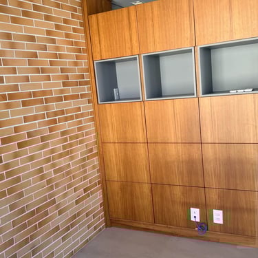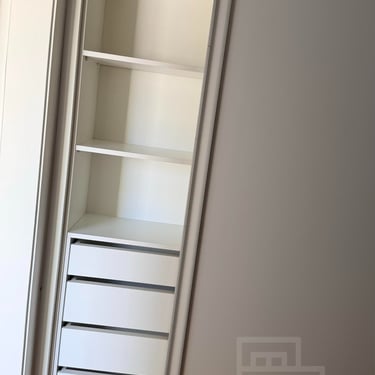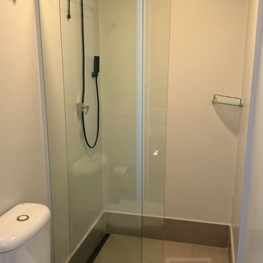 Quarto/escritório com marcenaria. Banheiro com chuveiro elétrico.