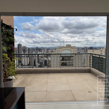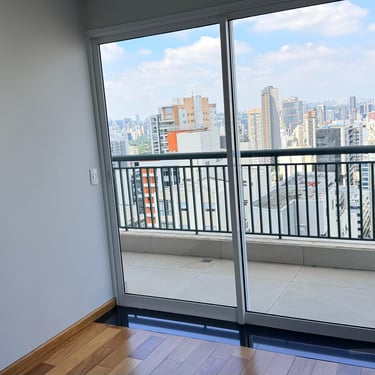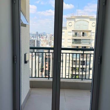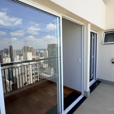 Varanda Privativa: Um espaço exclusivo para relaxar e contemplar a vista da cidade ao acordar.