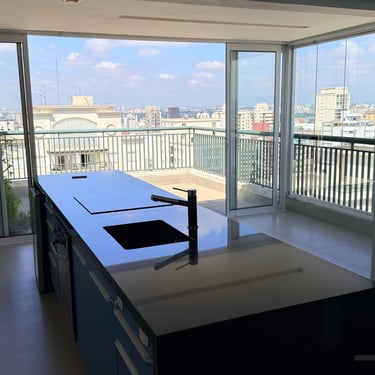 Localizada no topo de um prédio de 19 andares, na parte alta de Pinheiros, esta cobertura oferece um diferencial raro: todas as janelas — salas e quartos — têm vista aberta, sem prédios colados. Isso garante sol ao longo de todo o dia, circulação de ar constante e uma sensação real de amplitude e bem-estar.