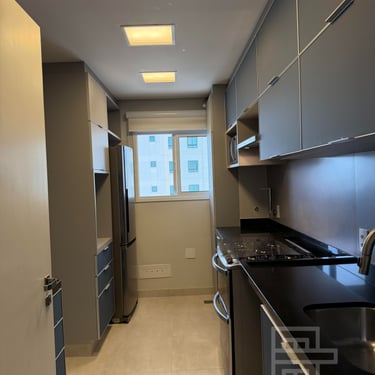 A cozinha é equipada com armários planejados da AG Movelaria, unindo estética contemporânea e praticidade. A integração entre os ambientes cria um espaço fluido, acolhedor e perfeito tanto para a rotina quanto para receber convidados.