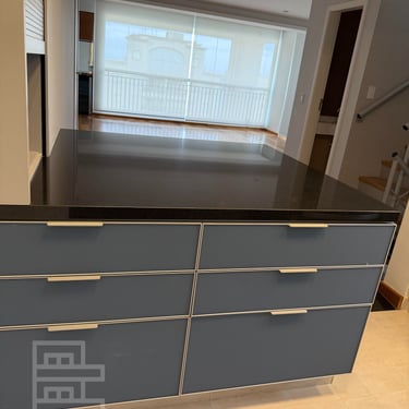 Cozinha ampliada com a mudança da lavanderia para pavimento inferior. Armários da cozinha e do bar pela AG Movelaria, com vidros Cinex e ferragens Blum. Cozinha equipada com geladeira, fogão 6 bocas, exaustor, microondas, filtro de água. Bar equipado com adega.